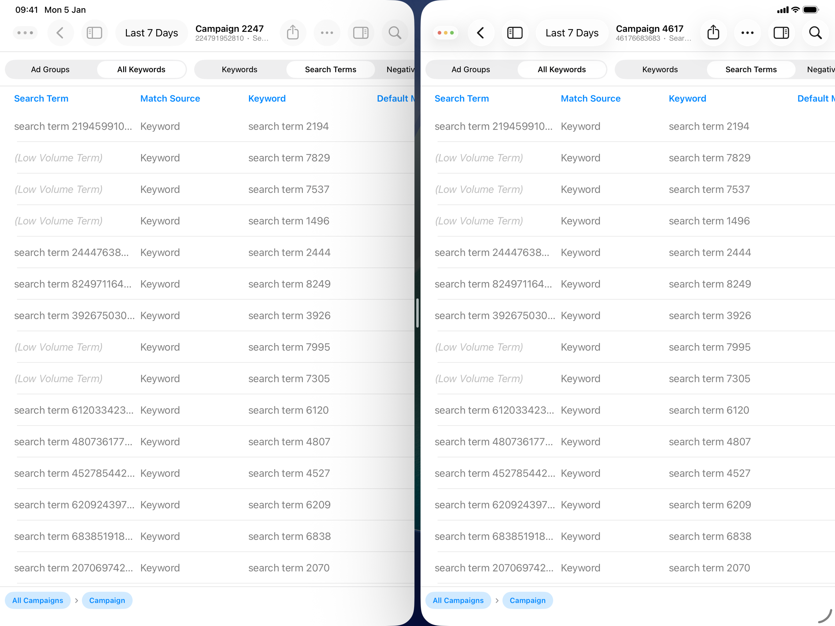 Quickly compare data across multiple campaigns side-by-side with support for multiple windows.
