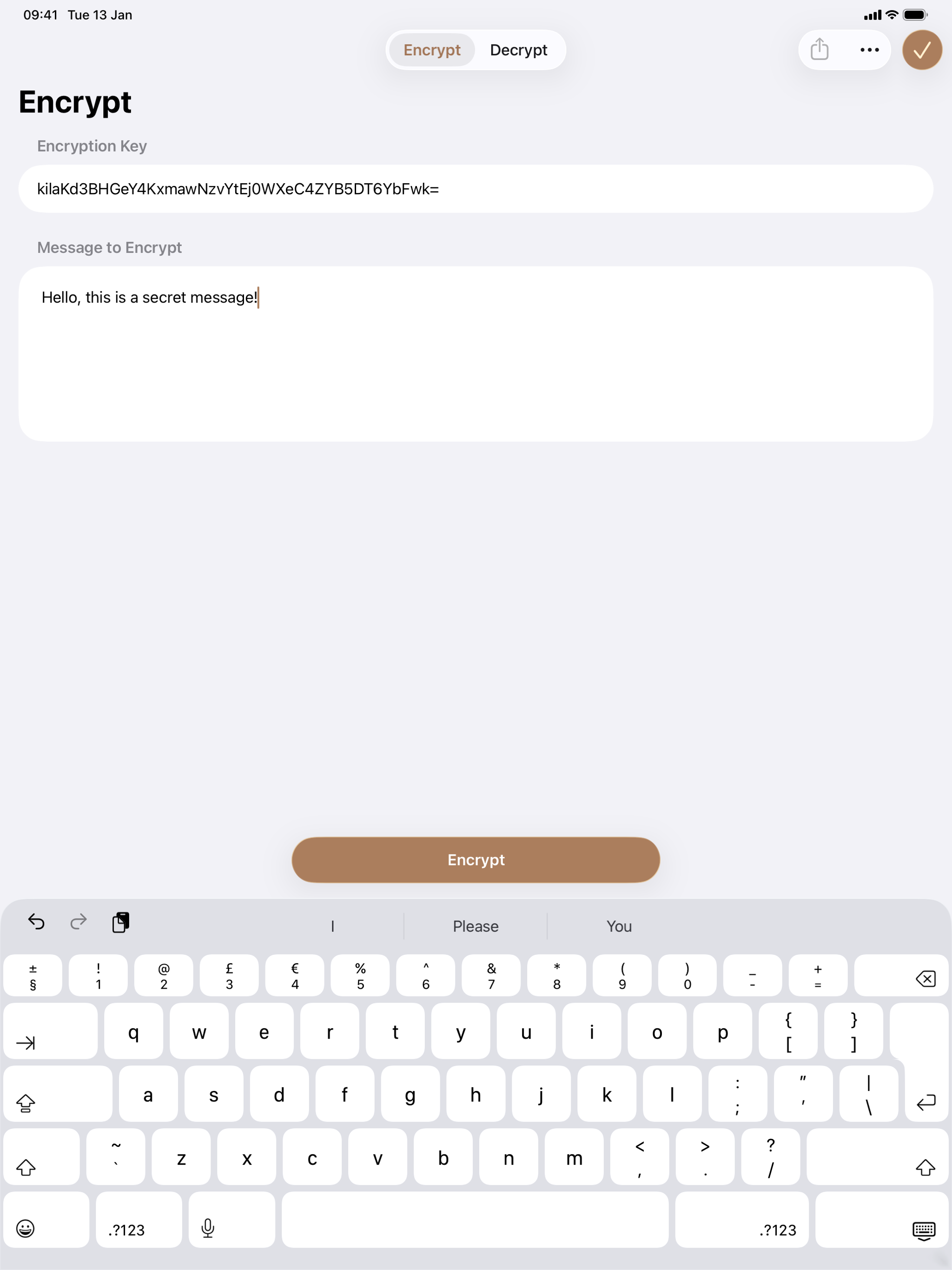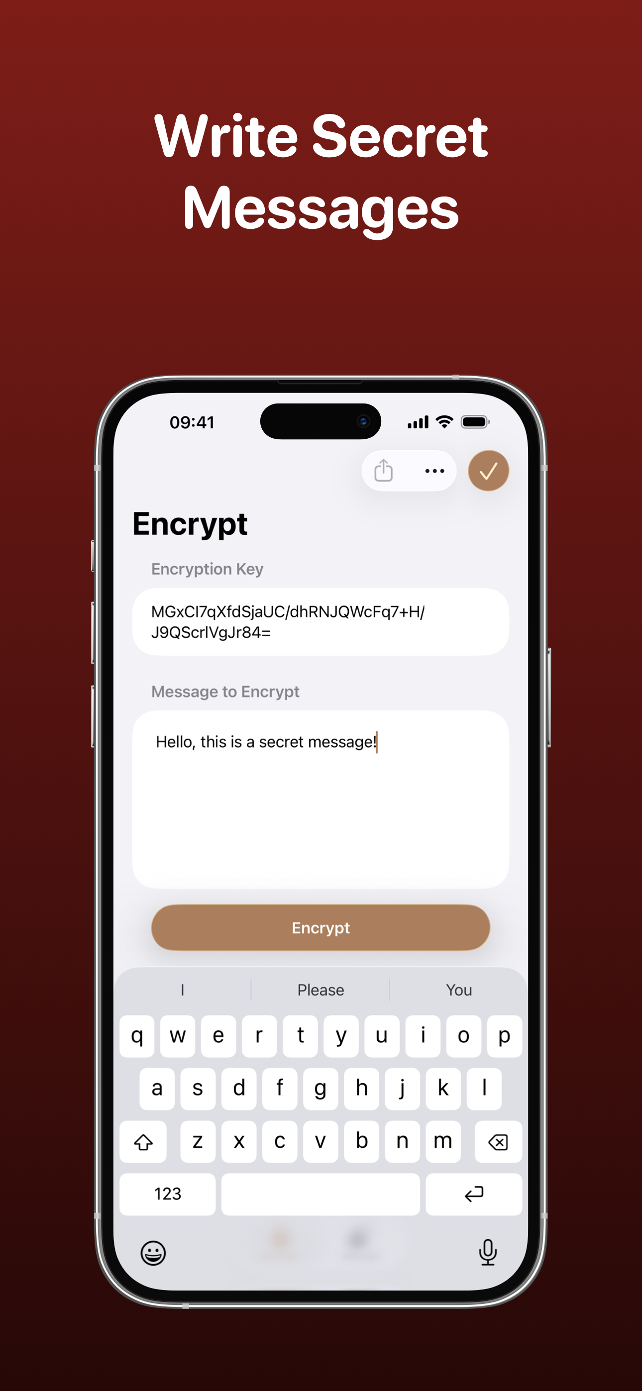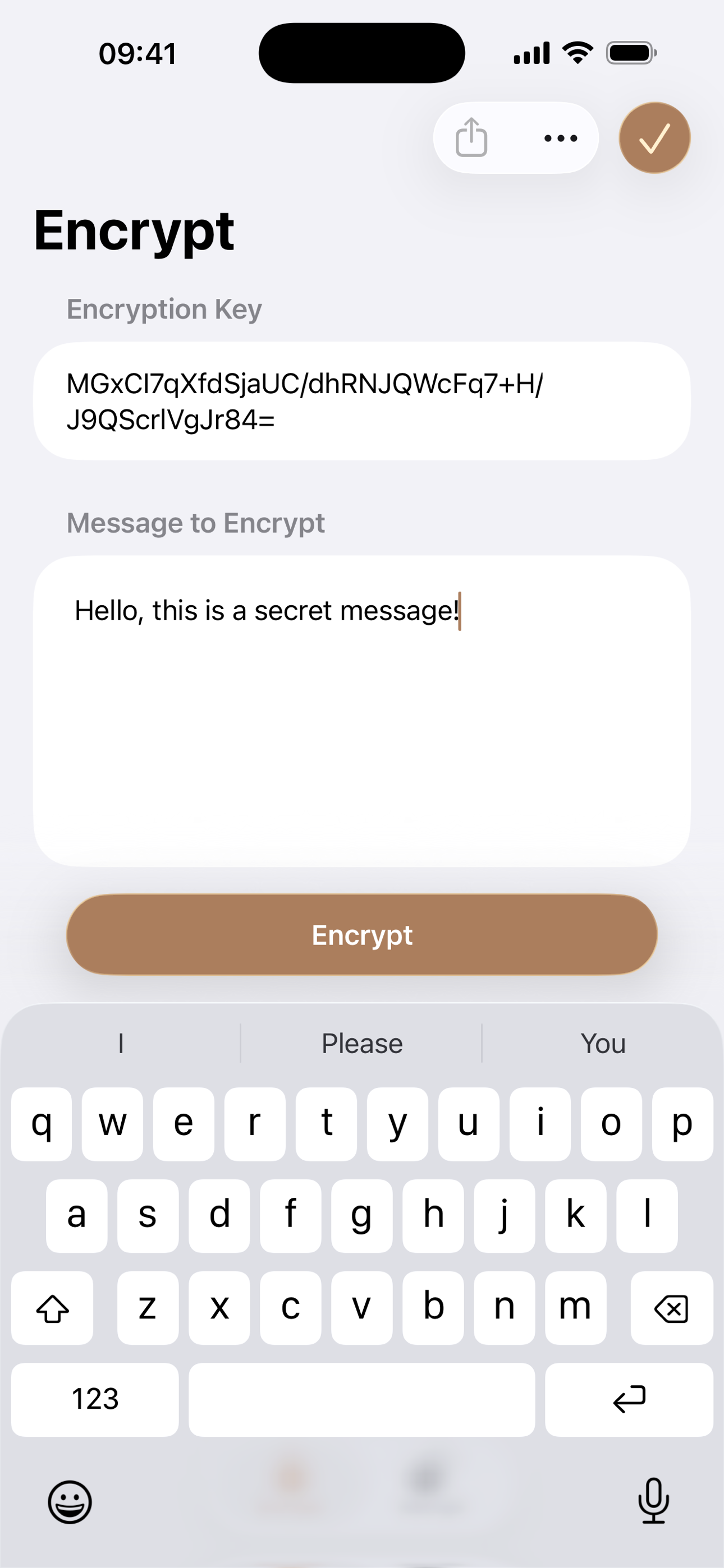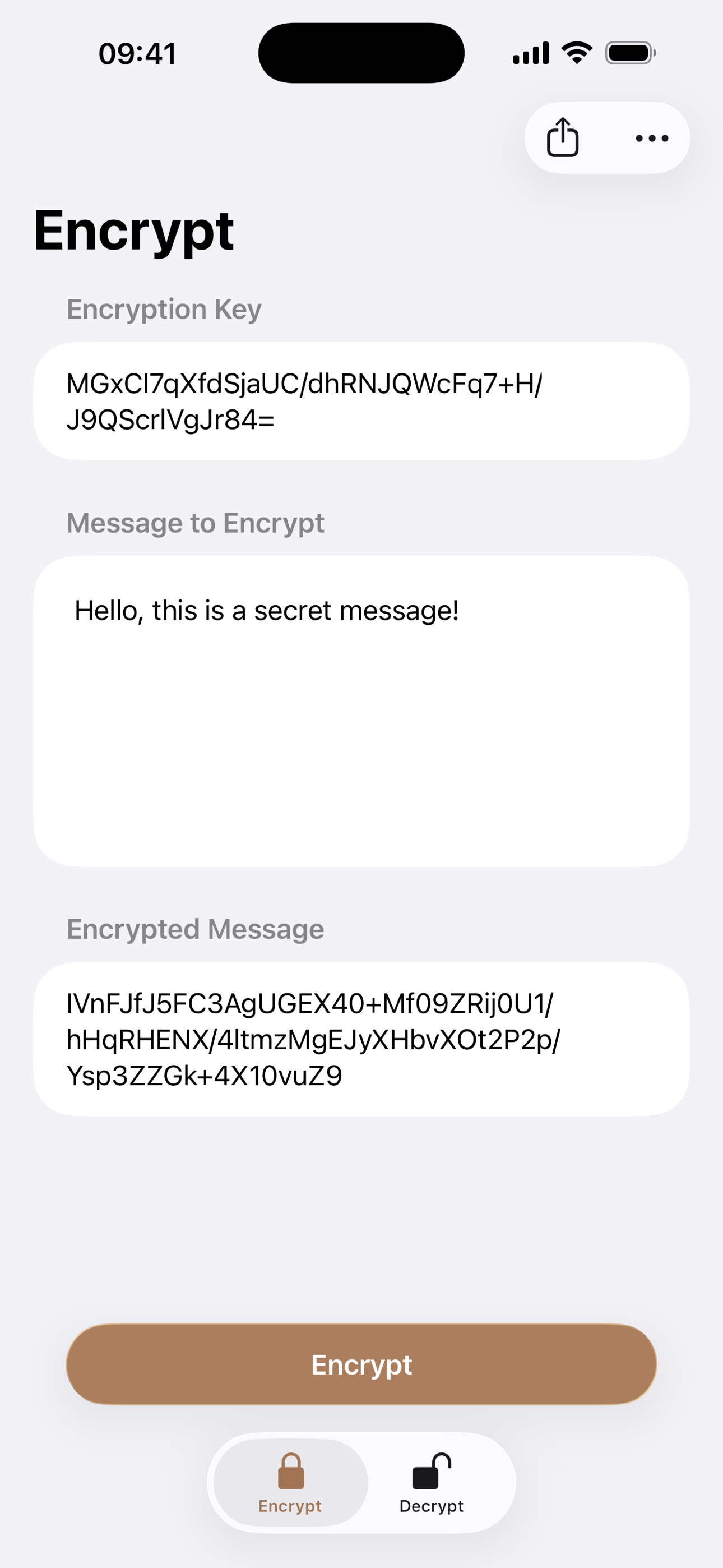 Cipher makes it super quick & easy to generate an encrypted message. Just enter your message in plain text and hit Encrypt. You can then send the scrambled message and encryption key to friends & family using the share button.