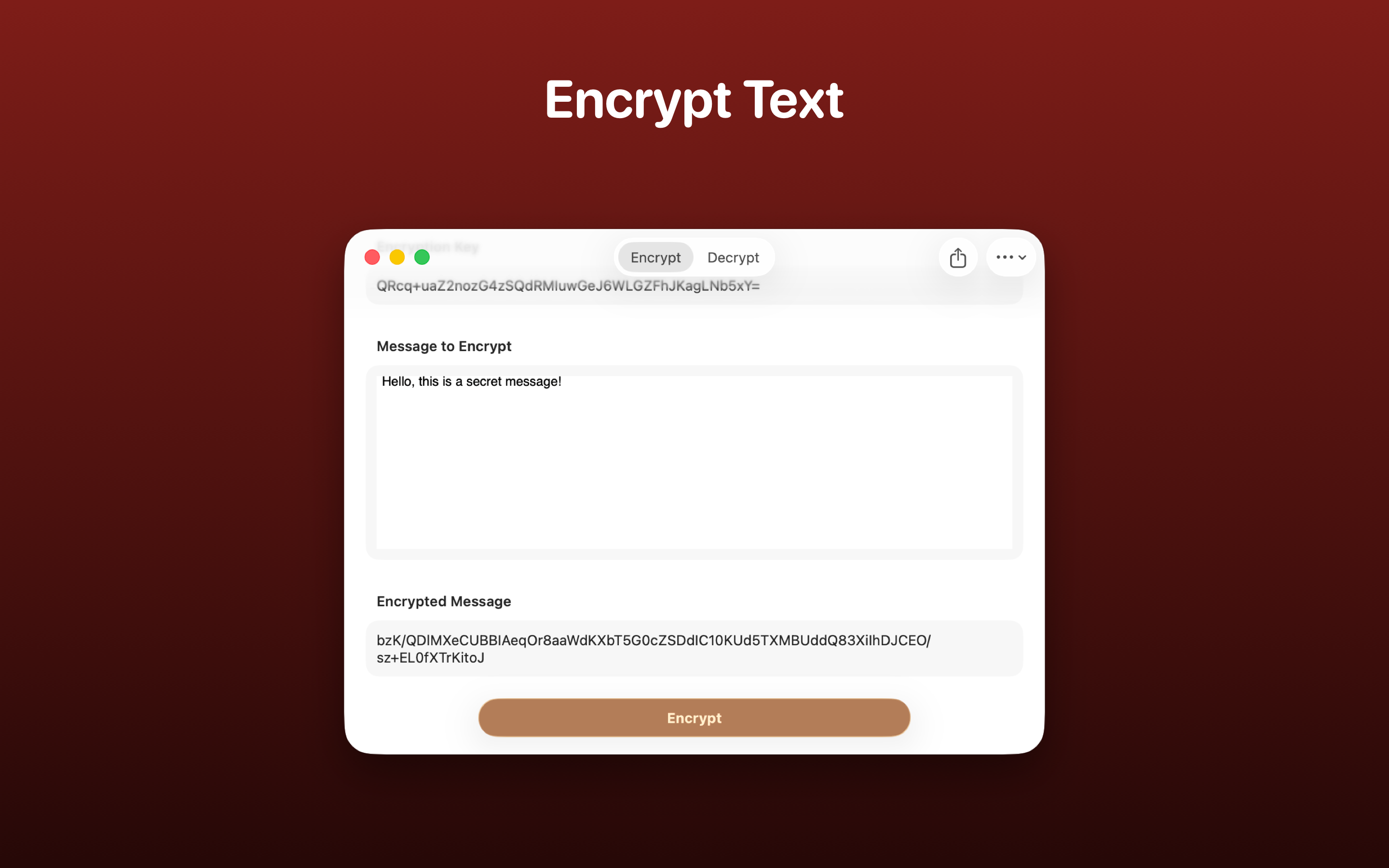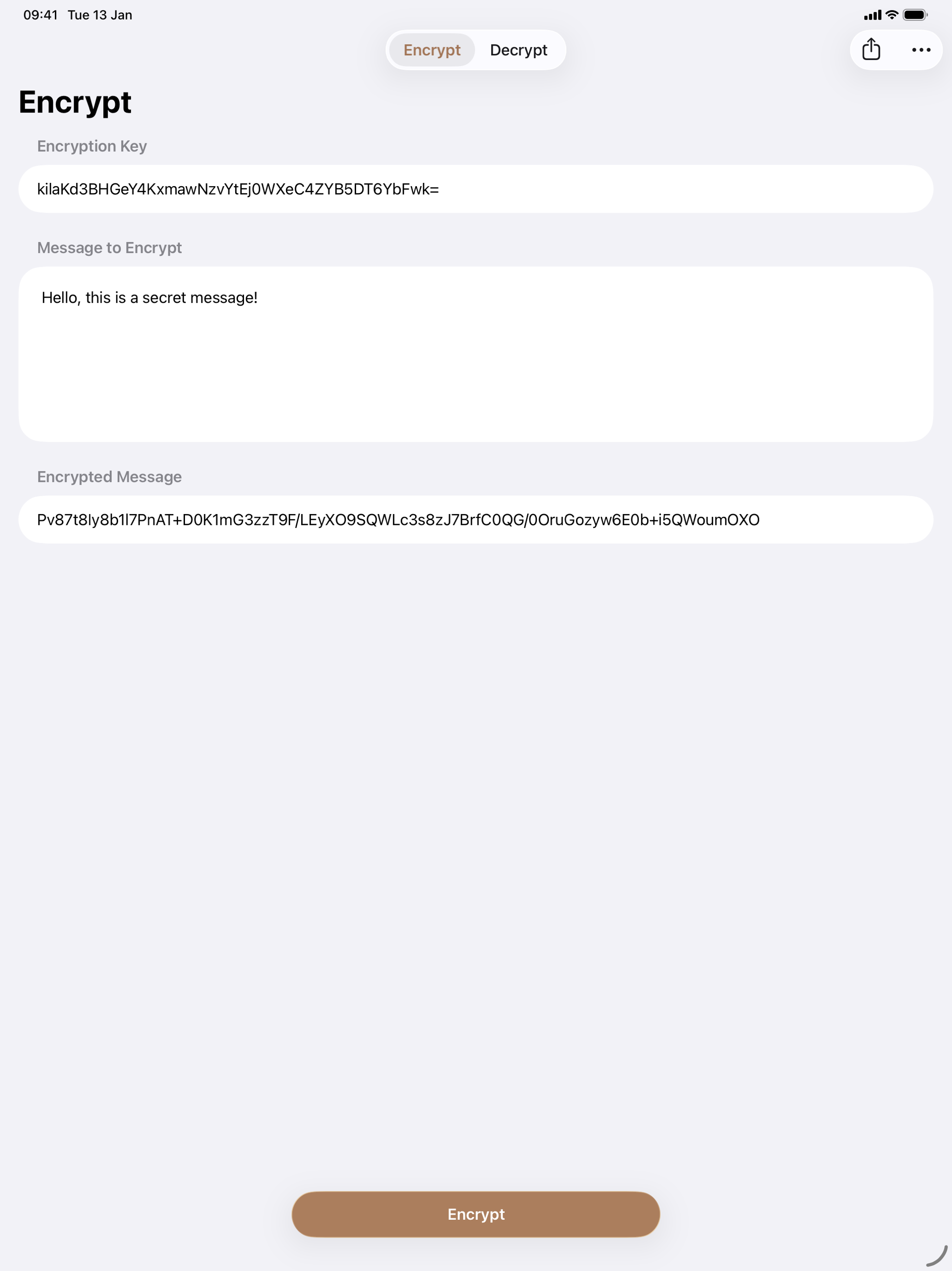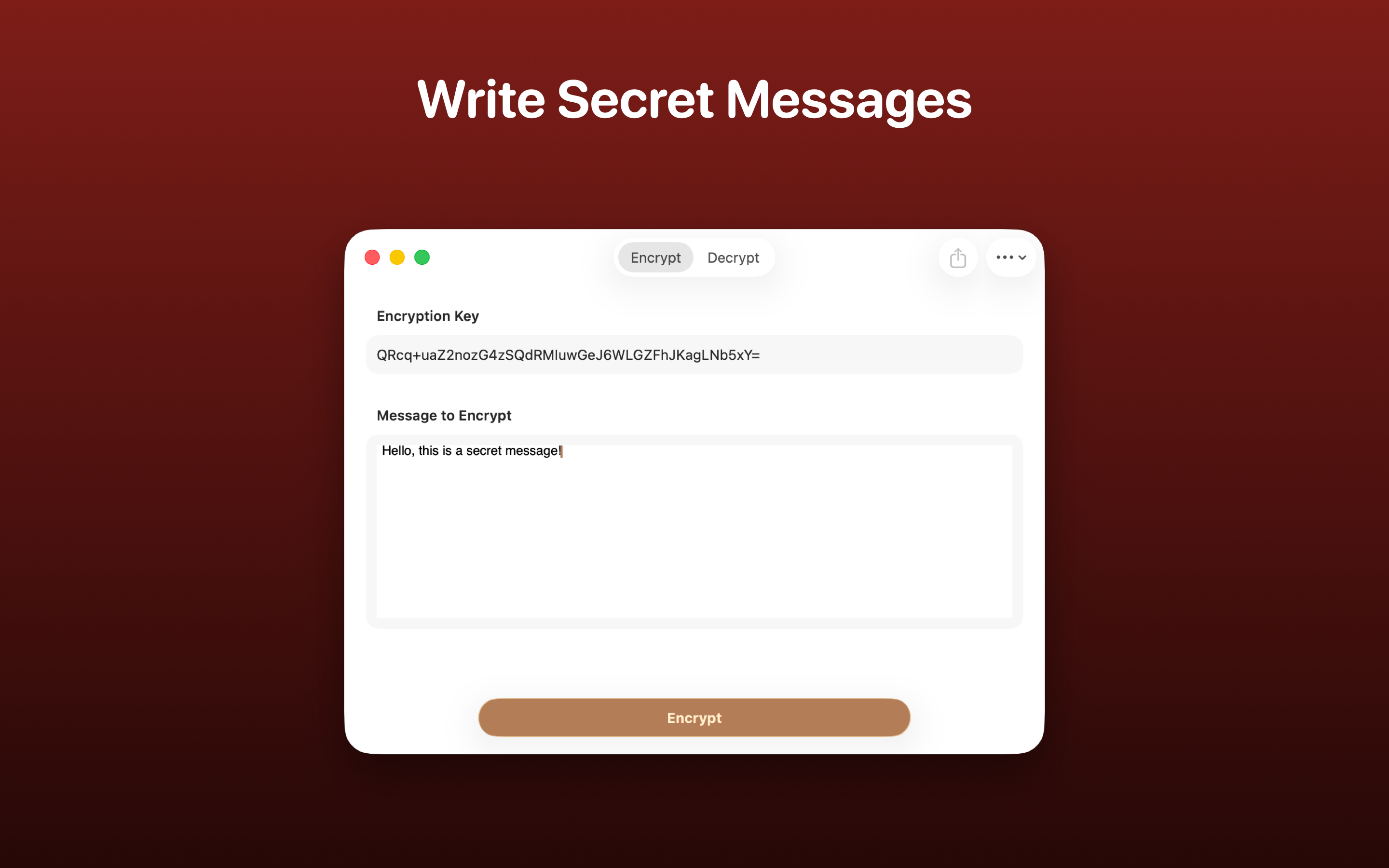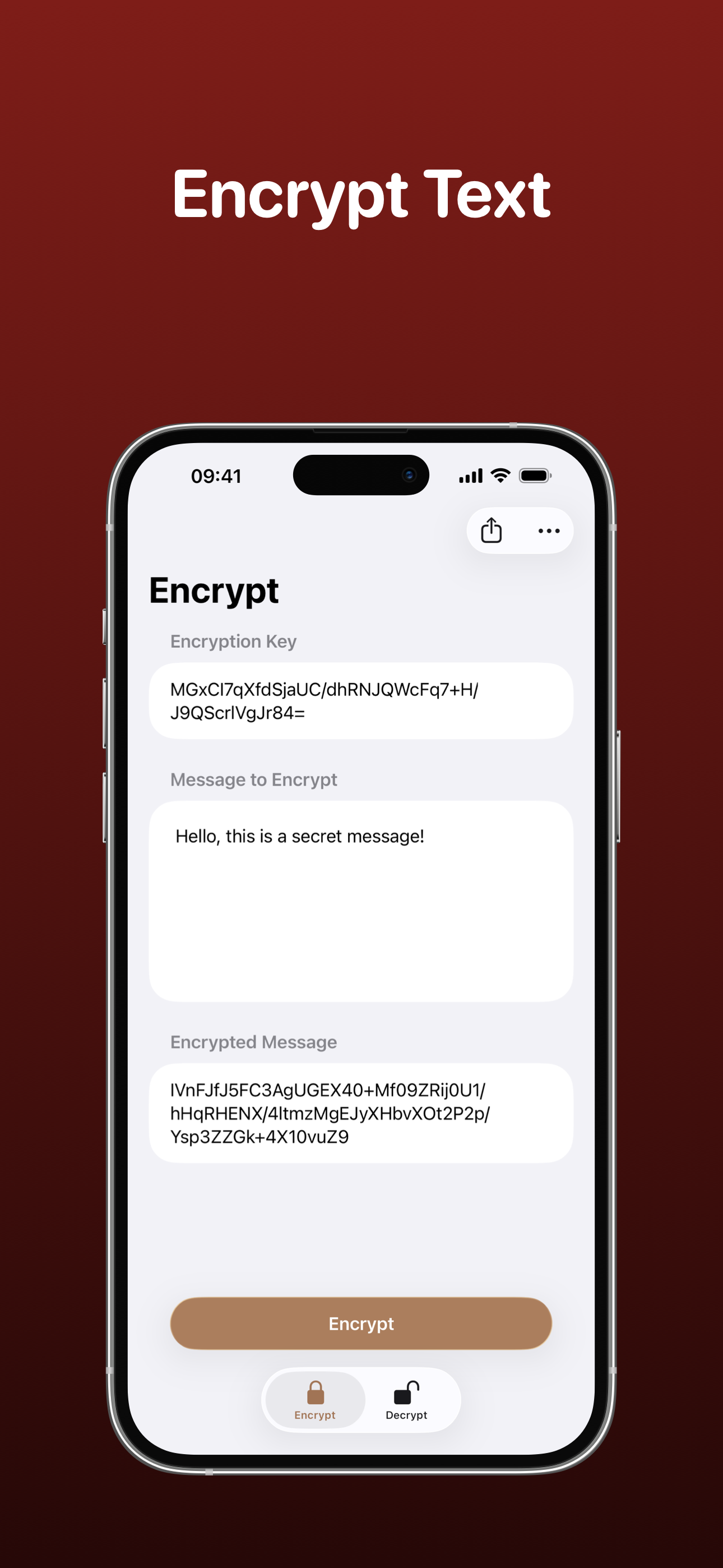 Cipher makes it super quick & easy to generate an encrypted message. Just enter your message in plain text and hit Encrypt. You can then send the scrambled message and encryption key to friends & family using the share button.