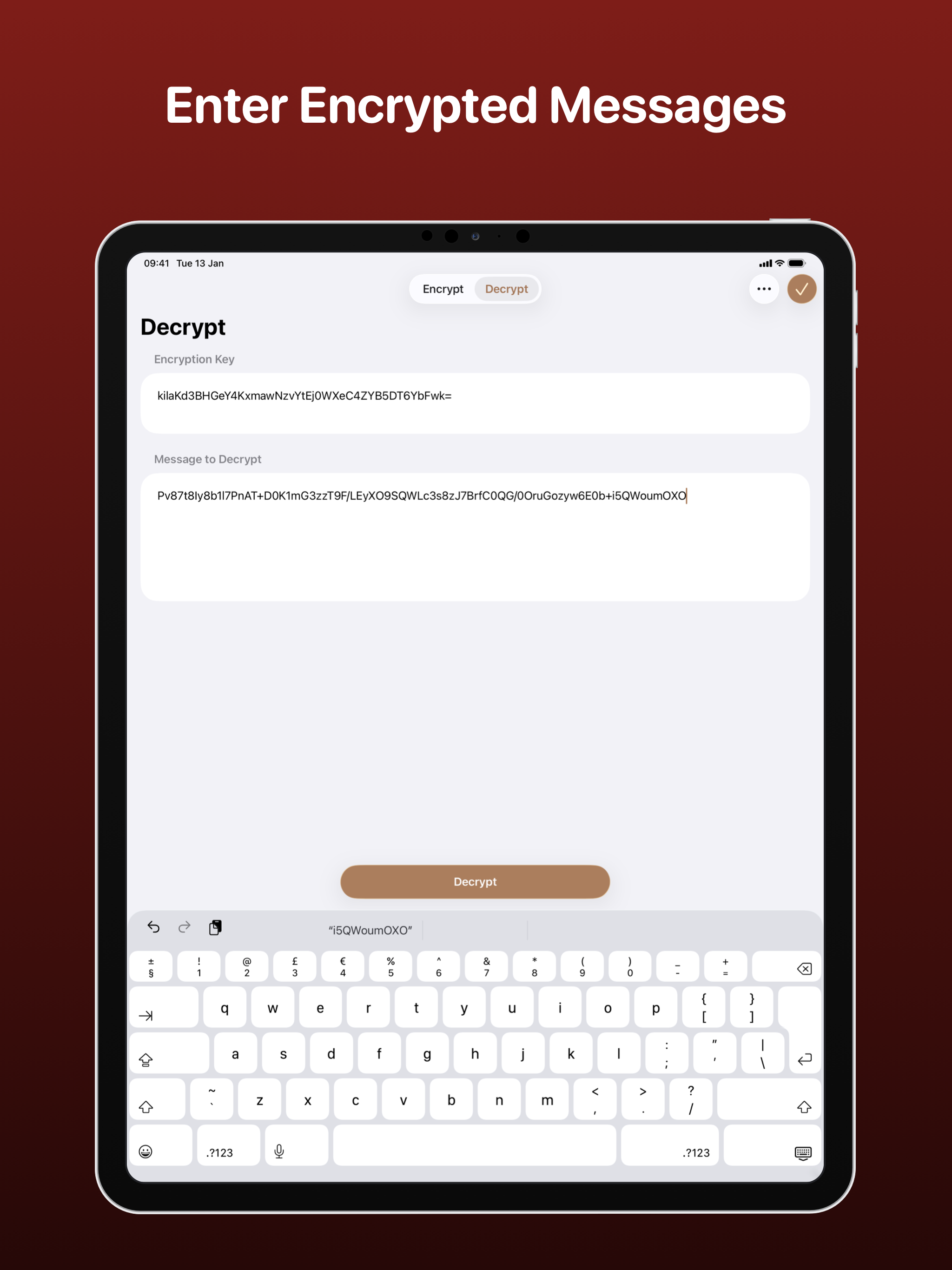 Use Cipher to send encrypted messages to friends & family. They can then decrypt it in Cipher too!